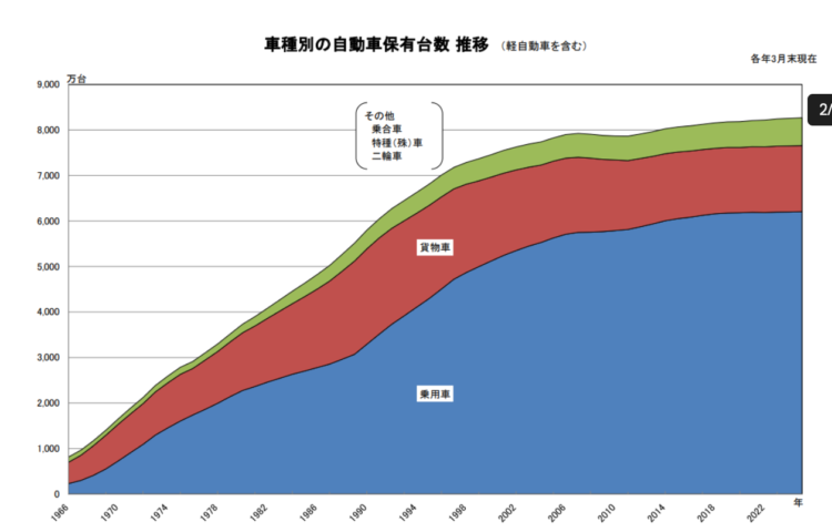 国内の自動車保有台数は大きな減少を見せておらず、横ばいの状態が続いています。