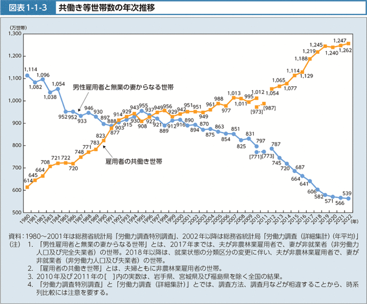 かつての専業主婦世帯に代わり、現在は夫婦の約7割が共働き世帯です。