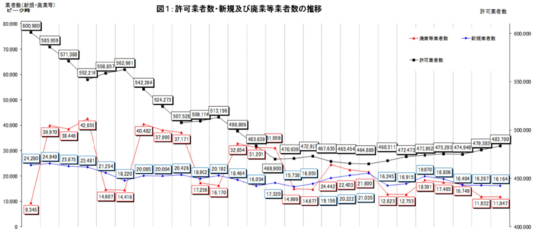つまり建設業界は、退出する会社もある一方で、許可を取って新しく事業を始める起業家も毎年一定数いるマーケットだと言えます。