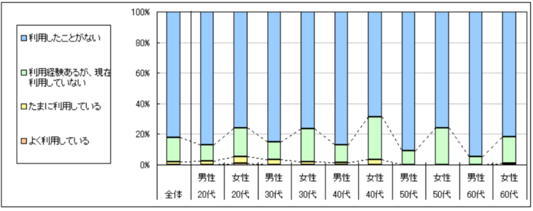 中小企業基盤整備機構の調査データを参照すると、特に20代から40代の女性層を中心に高い利用意向が示されています。