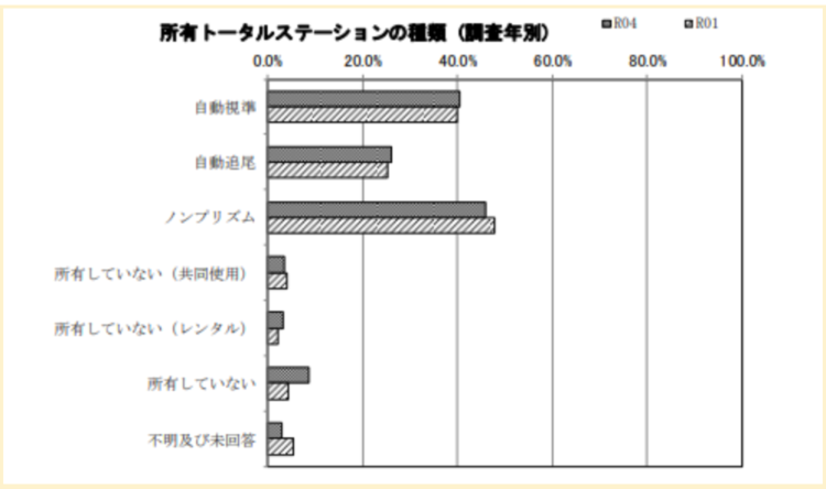 例えば、グラフの結果からわかるように、トータルステーションであればレンタルや共同使用している事務所もあります。
